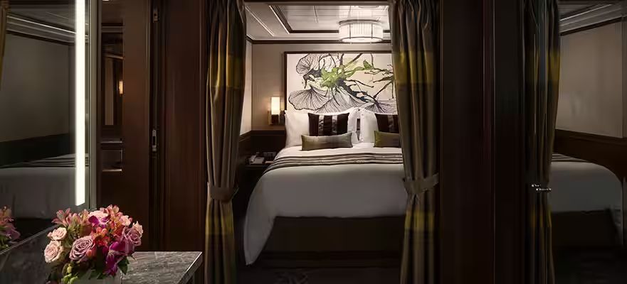 Ideal for the whole family. Up to six guests can stay in these luxurious Suites that include a bedroom with a queen-size bed and a separate children's bedroom. They also include a living area, dining room, private balcony and luxury bathroom with separate shower. In addition, some interconnect with other cabins so you can have your personal space while still being with your group. Includes butler and concierge service.